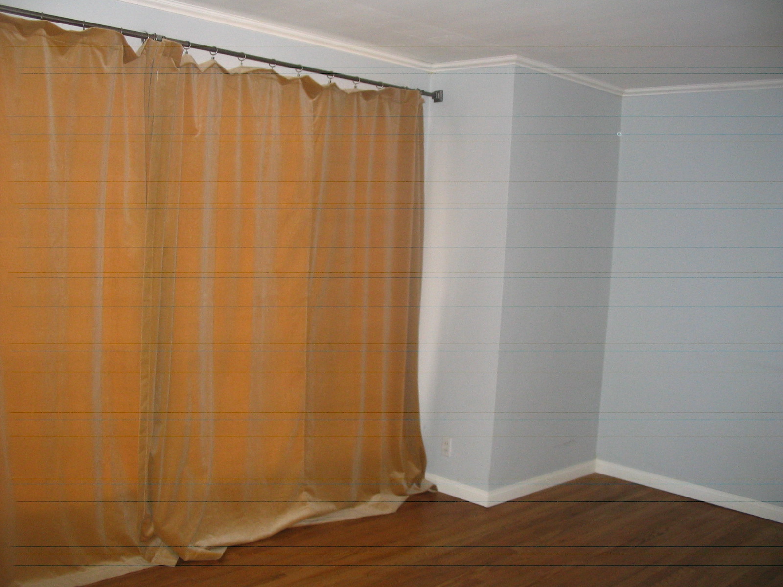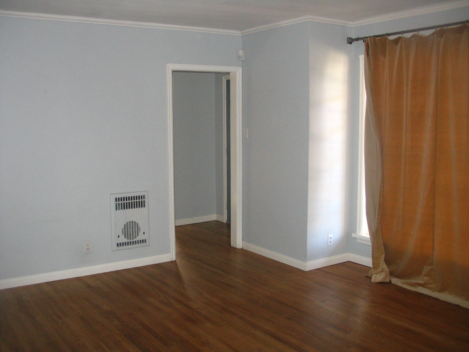 Living Room (That curtain rod is a plumbing pipe w/ finials added-it was a 12' window & I could not find a rod long enough)