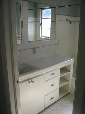 Master Bathroom (It was tiny-just added shelves & window covering & we kept almost all original features other than replacing toilet seat & shower/sink fixtures & removing shower door)