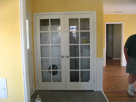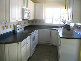 Kitchen (Built a closet to enclose the water heater, storage & a stacked washer/dryer. Can you believe there was no dryer (not even a hook up) in this house at all when we bought it? There was a clothesline in back though!)