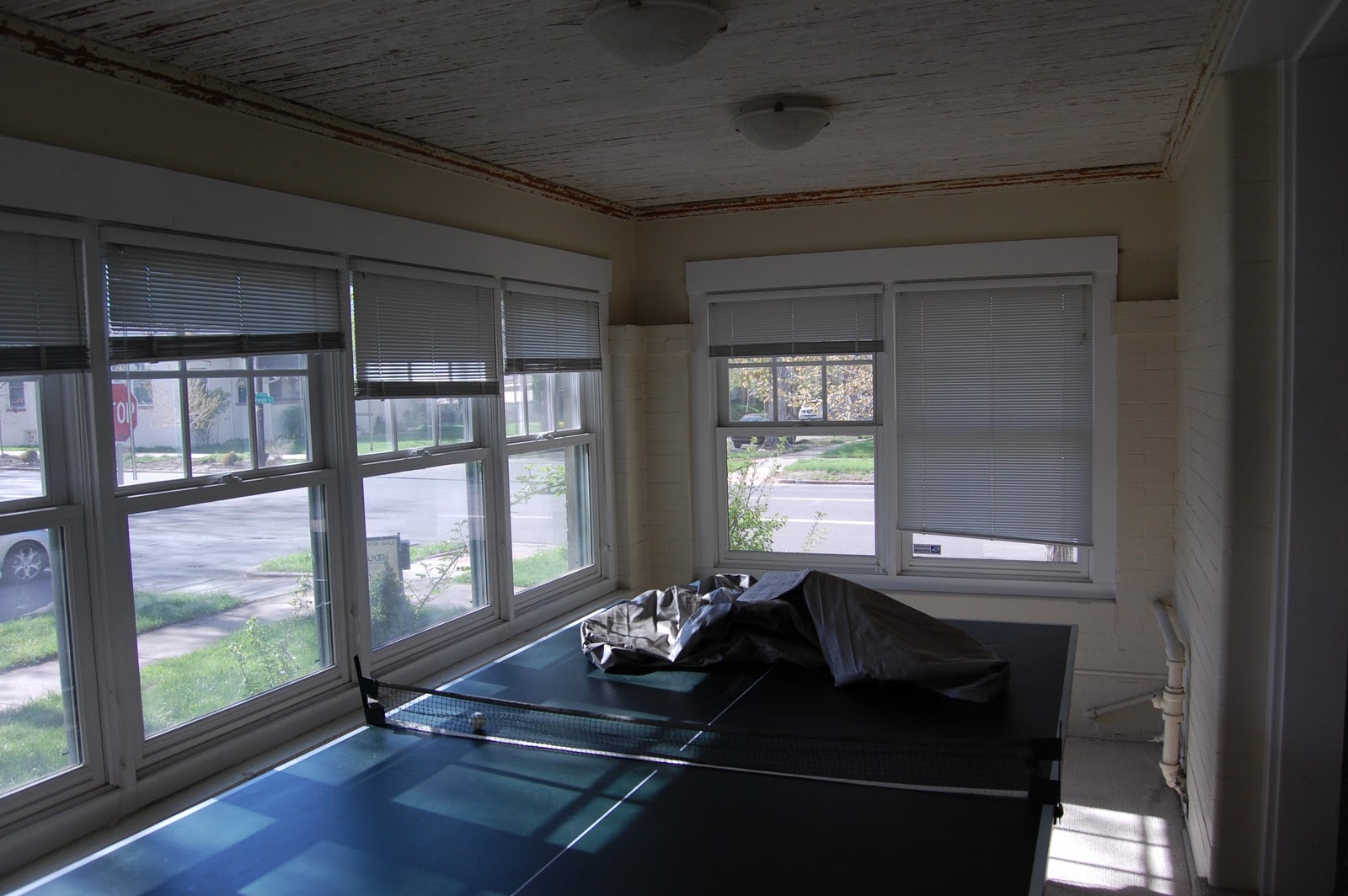 When we moved in one of the first things we did was remove the horrible tan stained carpet in the sunroom.  Here is about the only picture I have of it...