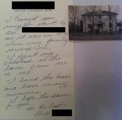 I got this letter in the mail yesterday...just addressed to "Resident" with our address on it.  From what I can tell the man is 90yrs old & still lives in the neighborhood...just a few blocks away.  I am guessing he's seen us outside & the kids playing & possibly felt nostalgic.  For many, many years prior to us buying the house it was a multi-family rental with 2-3 units.  I am sure a string of people moved in & out in those years...mostly younger people & probably very few families.  I can see how he'd like seeing a family in here again.  Anyway...I thought it was very sweet & thoughtful to reach out to us.  My husband or I will write him back & invite him over.  I'd love to hear stories or see more pictures of the house from those times & love to show him the house as it is now.