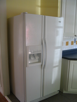 Kitchen (Built a closet to enclose the water heater, storage & a stacked washer/dryer. Can you believe there was no dryer (not even a hook up) in this house at all when we bought it? There was a clothesline in back though!)